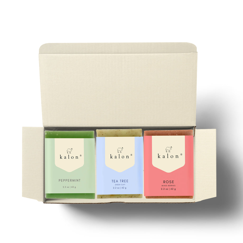 Kalon Trio 4 of Mini Travel Size Soaps (Peppermint, Tea Tree, Rose and Mixed Berries)