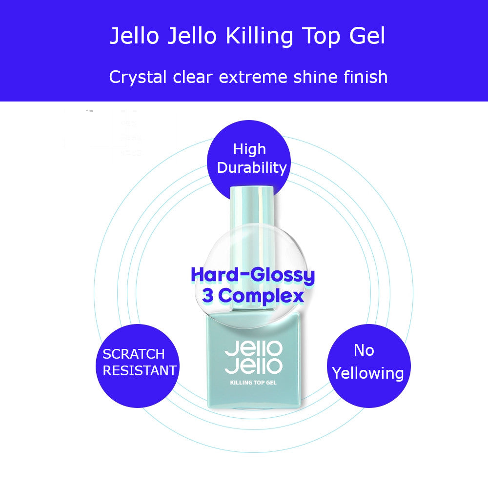 Experience the ultimate in luxury with the Jello Jello Killing Top Gel, boasting a for a lasting beauty. With a medium viscosity and no-wipe type, this top gel is perfect for creating a look that is effortlessly exquisite.
