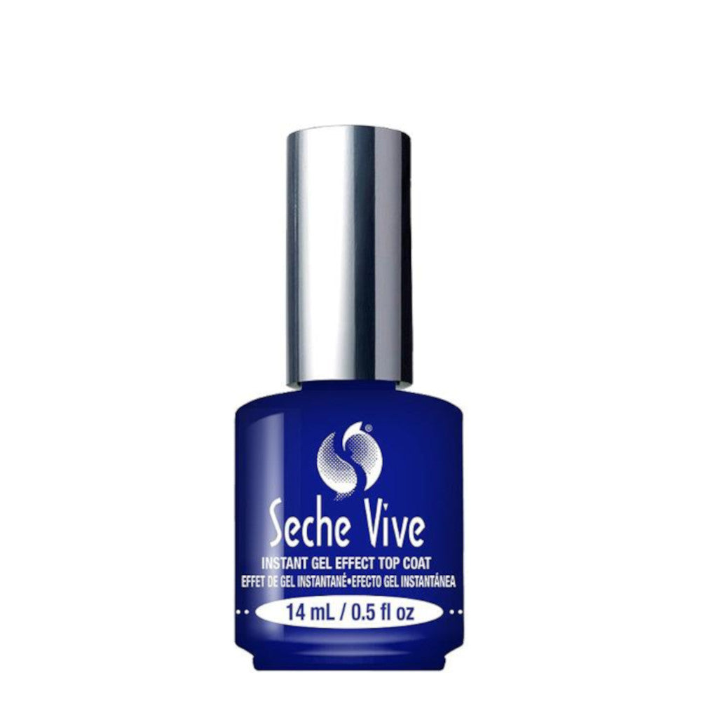 Bring your manicure to life with Seche Vive Instant Gel Effect Top Coat. This specially formulated fast drying top coat delivers the plumping effect of a gel in a glossy, high shine without the use of a UV/LED light! The salon worthy manicure removes easily with any acetone or non-acetone nail polish remover.
