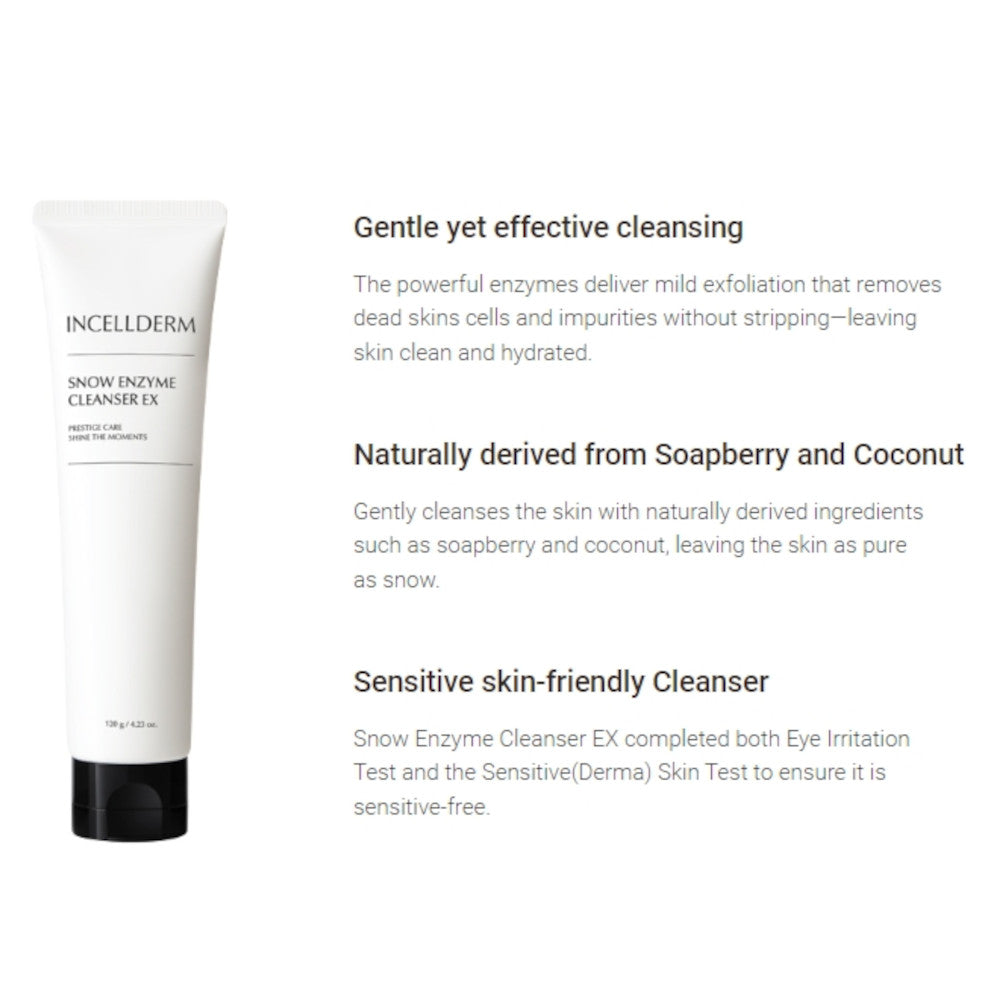 snow-like foam, revealing your cleanest, freshest skin ever.Incellderm Snow Enzyme Cleanser Ex