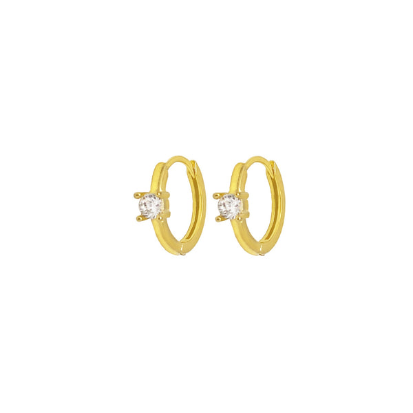 Solitaire Gemstone Huggie Hoop Earrings in Silver