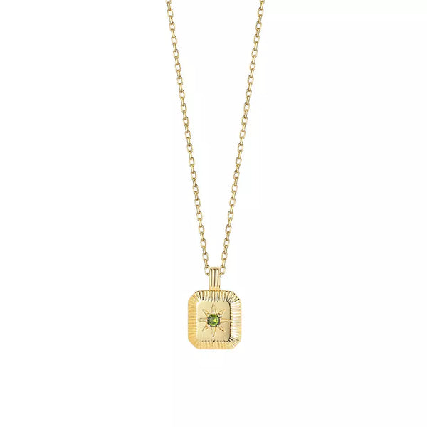 Birthstone Square Pendant 14K Gold Plated Sterling Silver Necklace (Peridot)