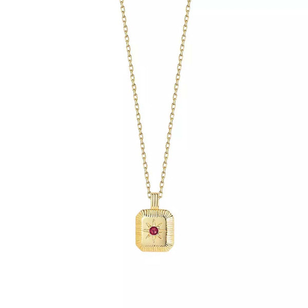 Birthstone Square Pendant 14K Gold Plated Sterling Silver Necklace (Ruby)