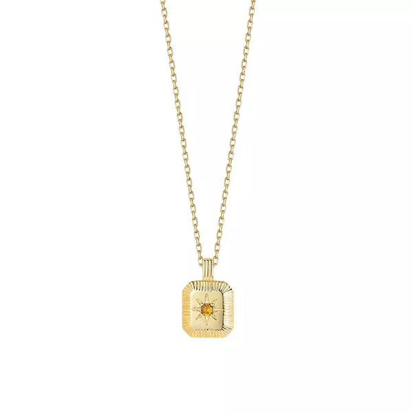 Birthstone Square Pendant 14K Gold Plated Sterling Silver Necklace (Citrine)