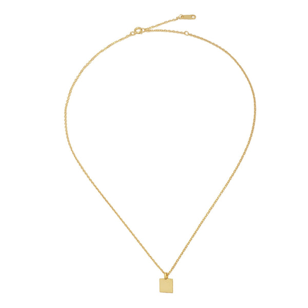 Birthstone Square Pendant 14K Gold Plated Sterling Silver Necklace (Aquamarine)