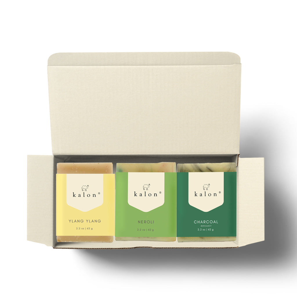 Kalon Trio 2 of Mini Travel Size Soaps (Ylang Ylang, Neroli, Charcoal and Bergamot)