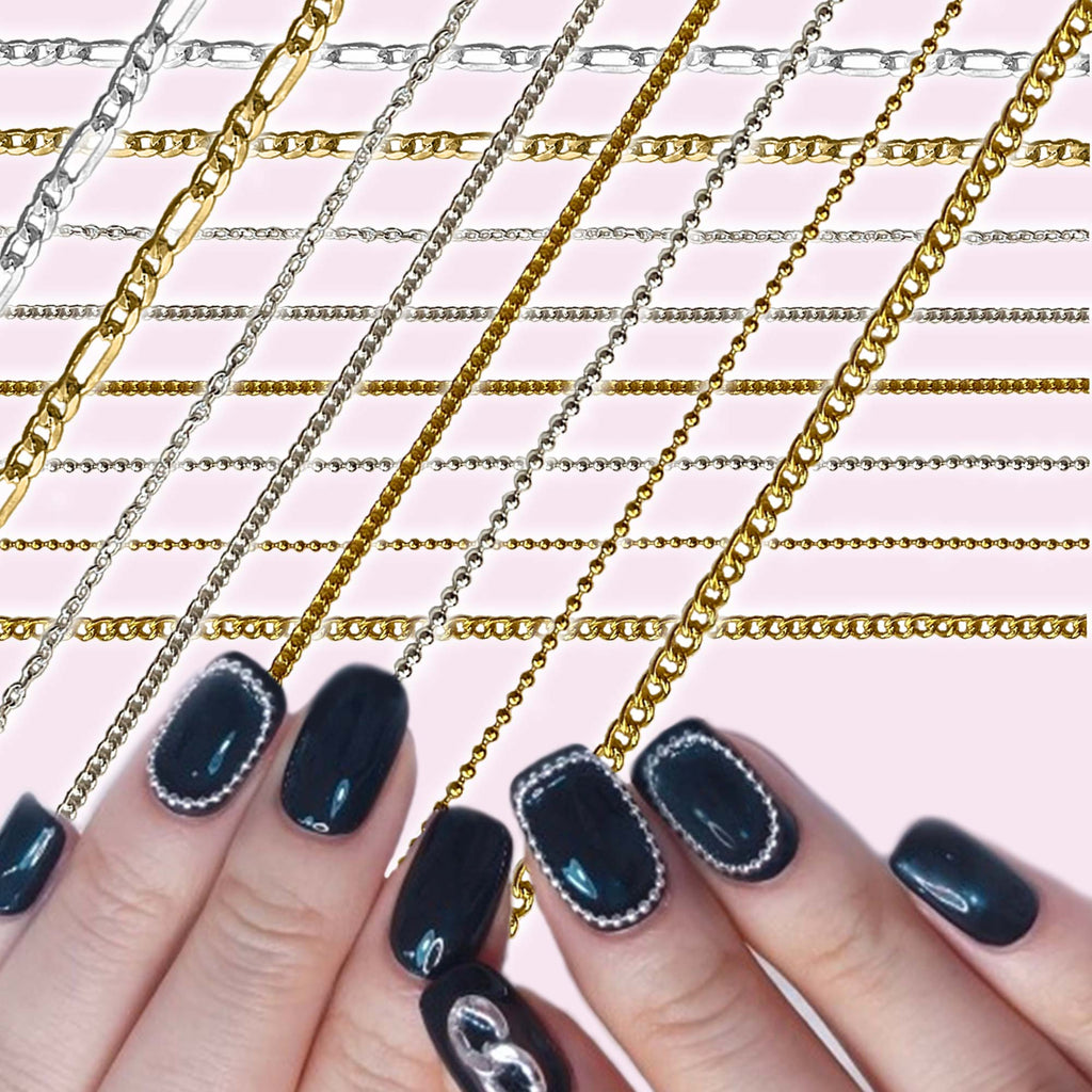 Nail Art Chain, Gold, Silver, Chrome, Pearl