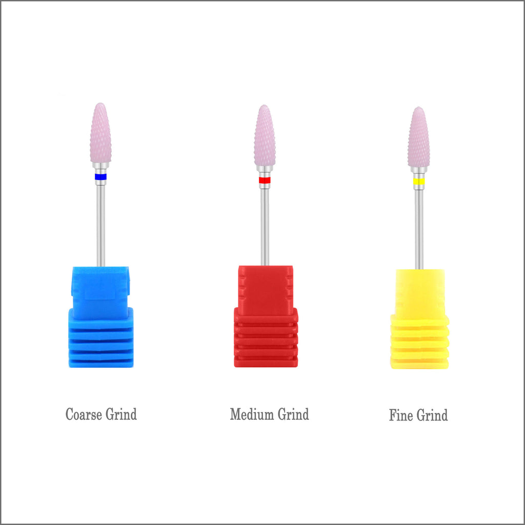 Ceramic Nail Drill Bits, Cone Shape, Pink - Coarse Grind