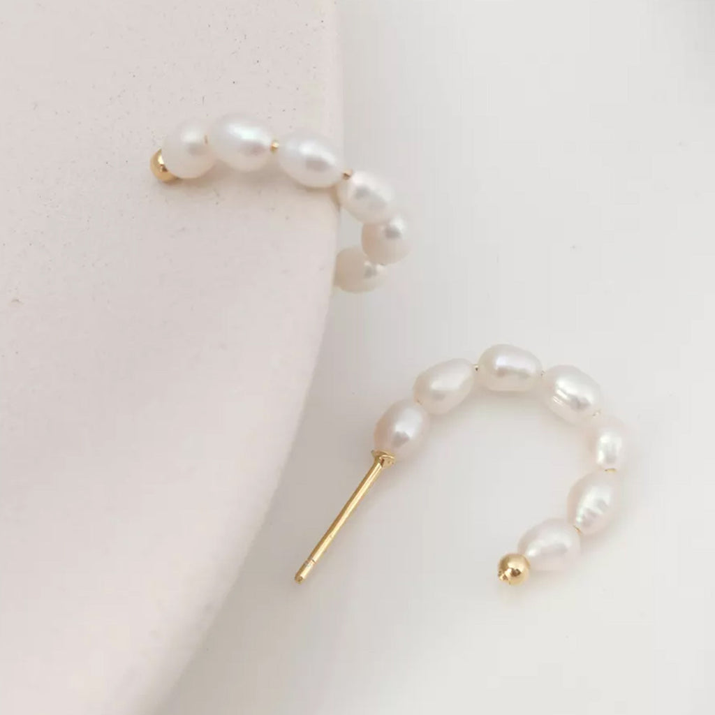 Flora Pearl Hoop Earrings in Gold