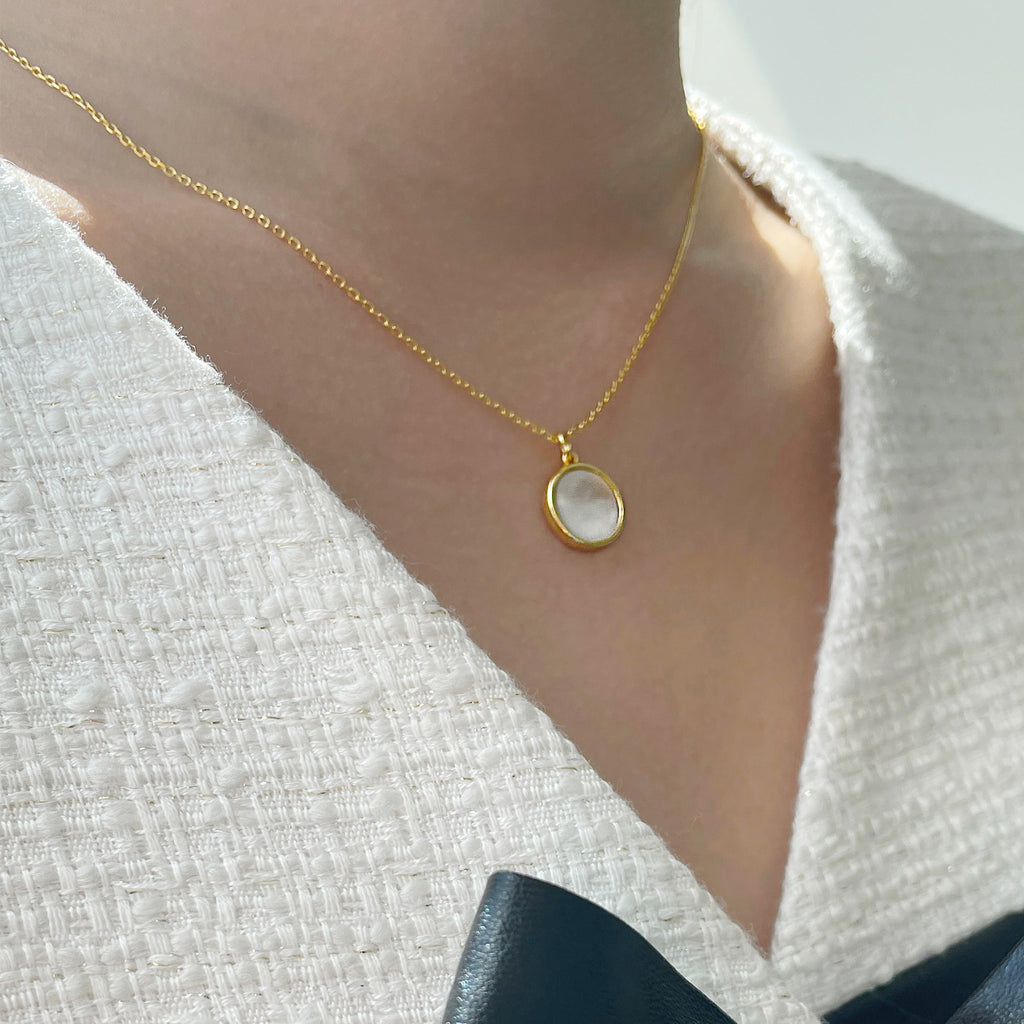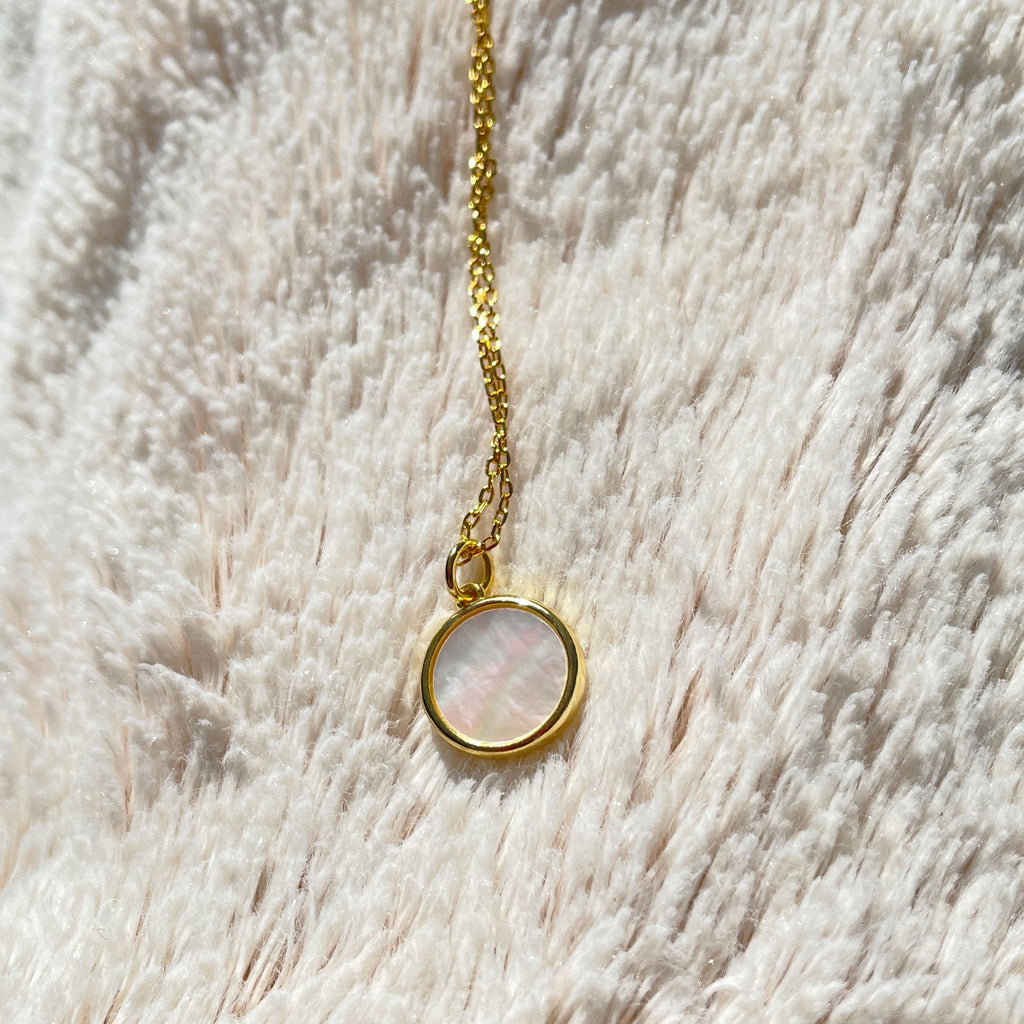 This mother of pearl pendant necklace echoes a bygone era of feminine mystery. Wear it alone as a signature piece or layered for a modern look.